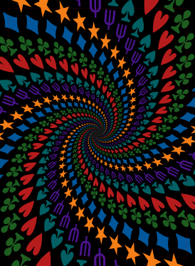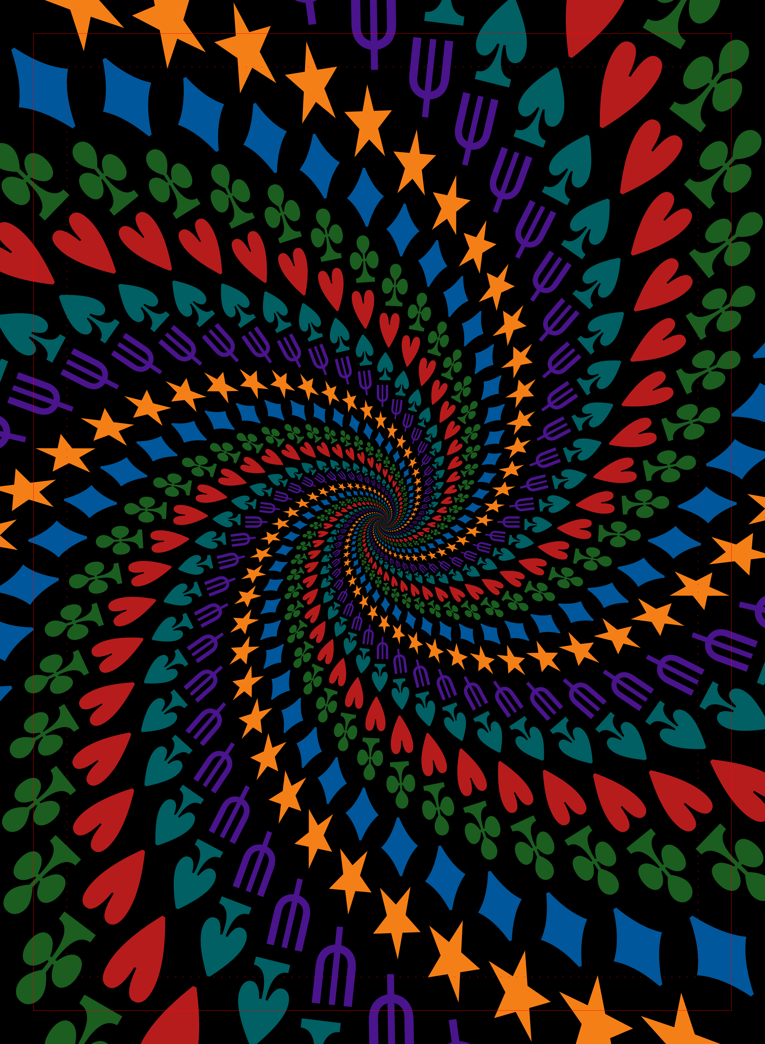 Overkill set of rainbow cards for experimentation. Cut from 12×12 sheet. Back first; bleed, cut, and safety outlined.